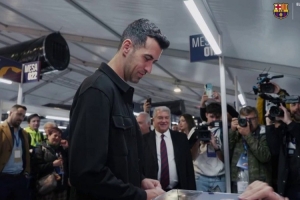 体育资讯3月15日讯 巴萨新一任主席选举投票开启,布斯克茨来到现场投票。
