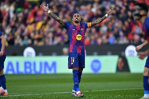体育资讯3月16日讯 在本轮西甲巴萨对阵塞维利亚的比赛中,拉菲尼亚打进3球。