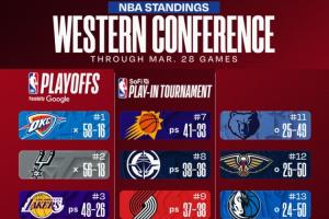 截至今日赛后的西部排名