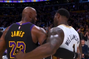GIF-锡安和老詹拥抱聊一聊~!!