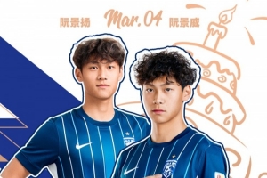 2025赛季,兄弟俩分别代表三镇B队出战19场、14场中乙联赛,同时入选一线队的阮景威在中超联赛中获得1次出场机会。期待兄弟俩努力成长,为三镇队奉献更多青春力量!