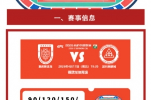 体育资讯4月13日讯 重庆铜梁龙发布中超第6轮对阵深圳新鹏城票务信息,本场门票售价90元-300元。