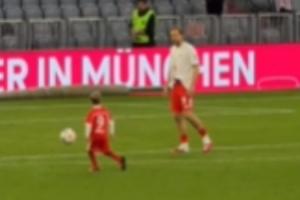 幸福时刻!拜仁提前锁定德甲冠军后,凯恩和儿子一起在球场踢球